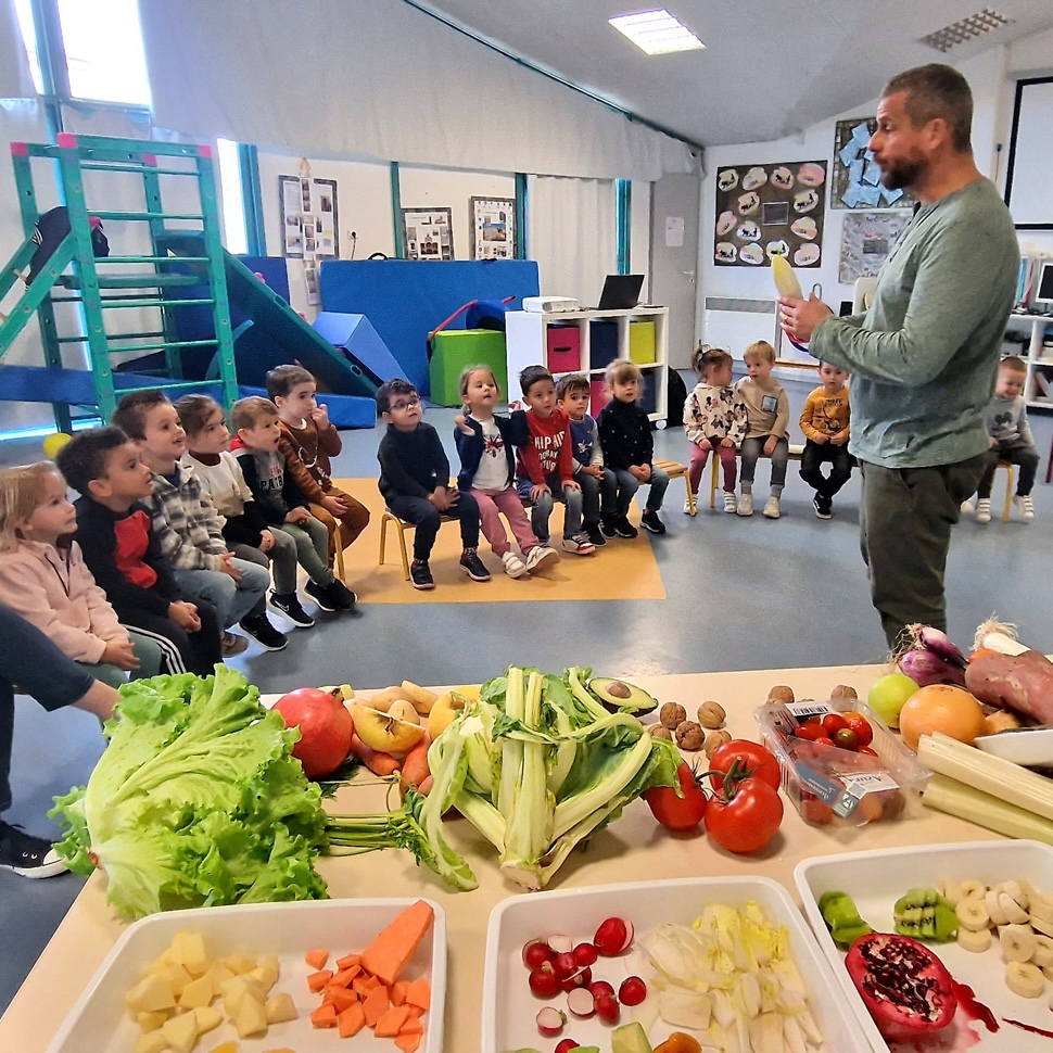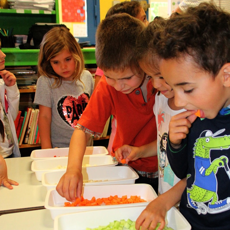Et si on croquait l’automne ? Et si on goûtait le printemps ? Autour d’un rituel simple et gourmand, fruits et légumes parlent de leur saison. Les enfants découvrent ensemble les mêmes saveurs, partagent leurs impressions et comparent leurs ressentis. Entre découpe en direct et dégustation collective, c’est un véritable festival de sensations qui s’organise dans la classe 🙂